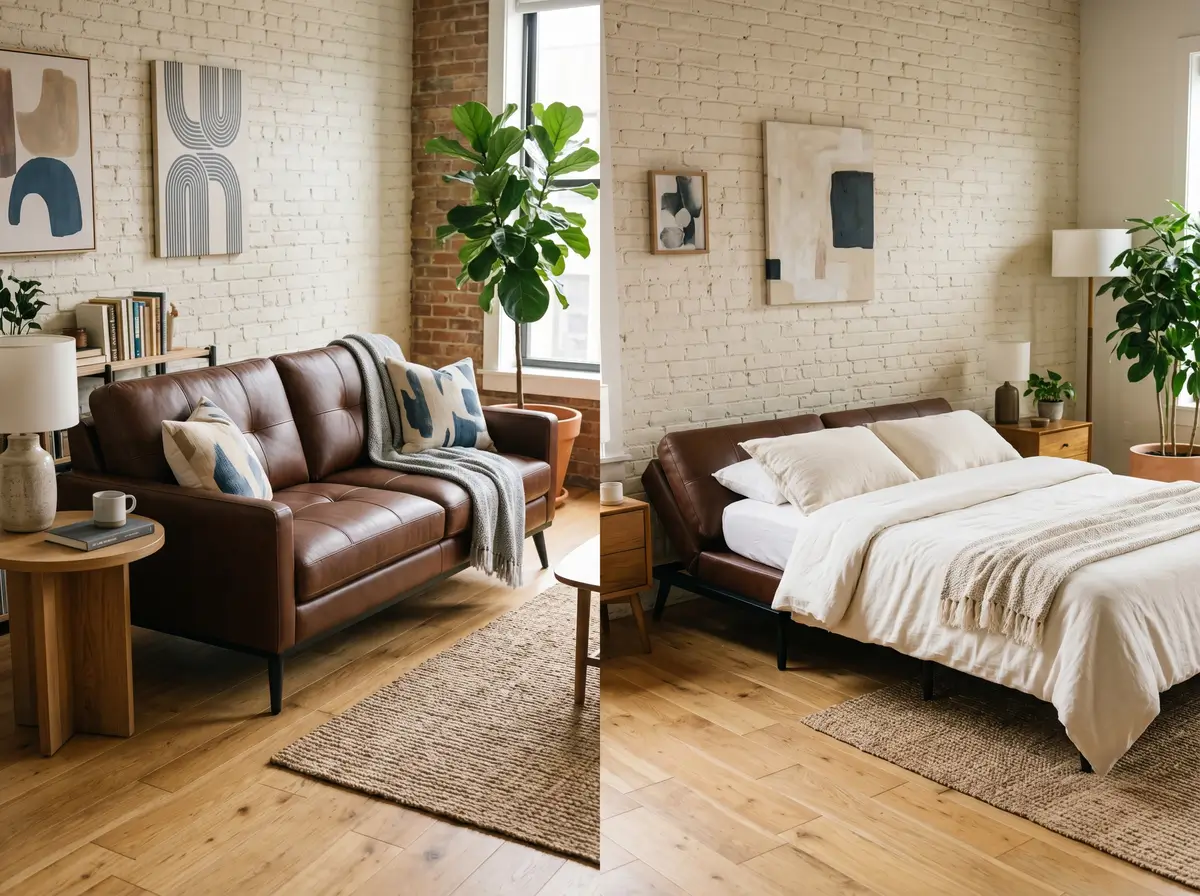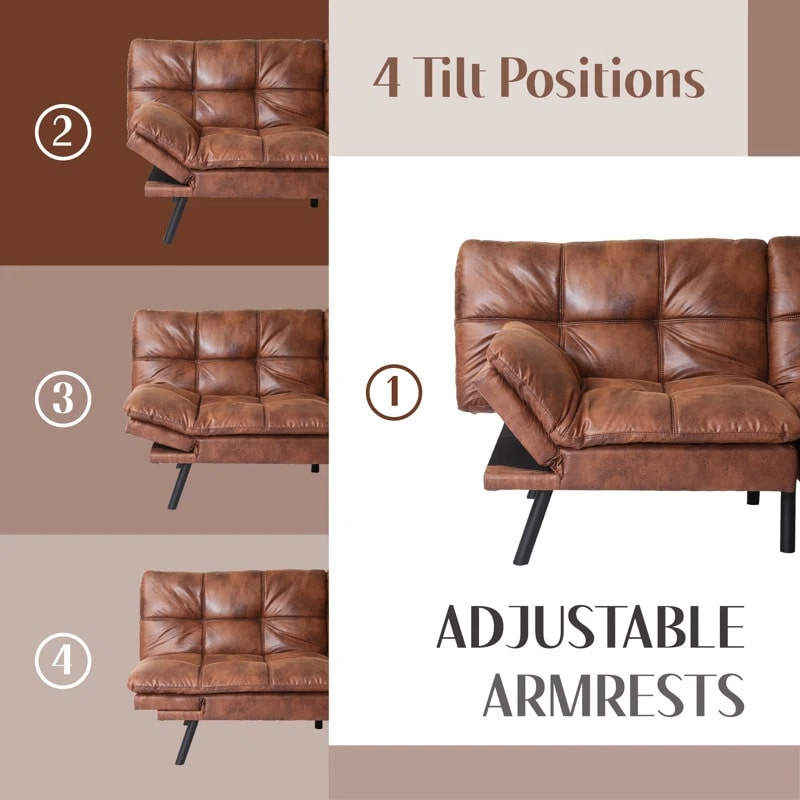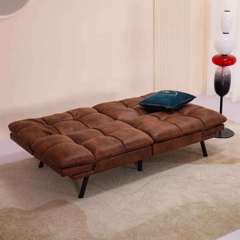 The Convertible Modern Leather Futon combines mid-century modern design with practical functionality. Its premium leather upholstery adds sophistication, while the convertible mechanism provides flexibility for modern living. Ideal for discerning homeowners seeking quality furniture with timeless appeal.
